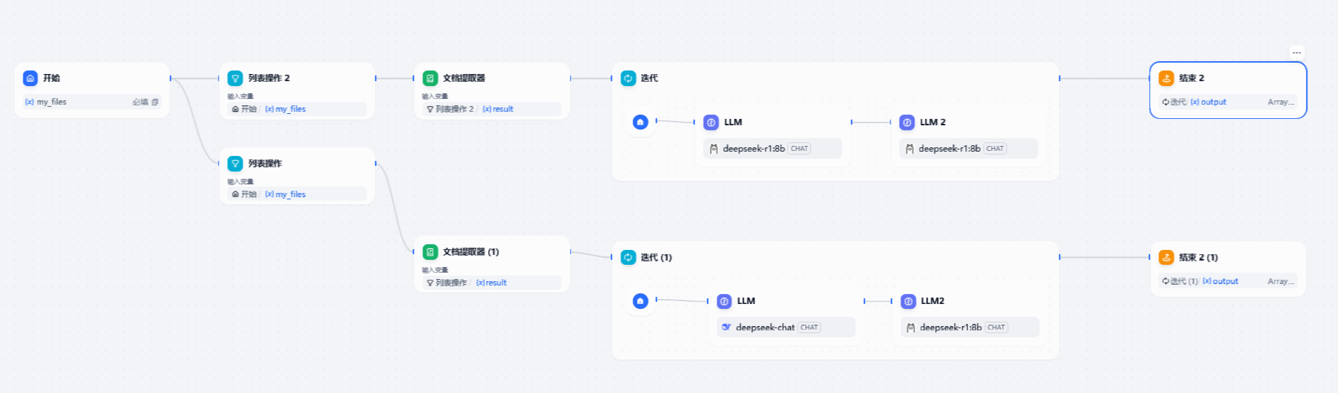 这里我们创建一个文本解析工作流,在该工作流之中,我们需要让用户上传一个或多个文件然后对文件进行提取文本,之后经过两个LLM解析,最终输出